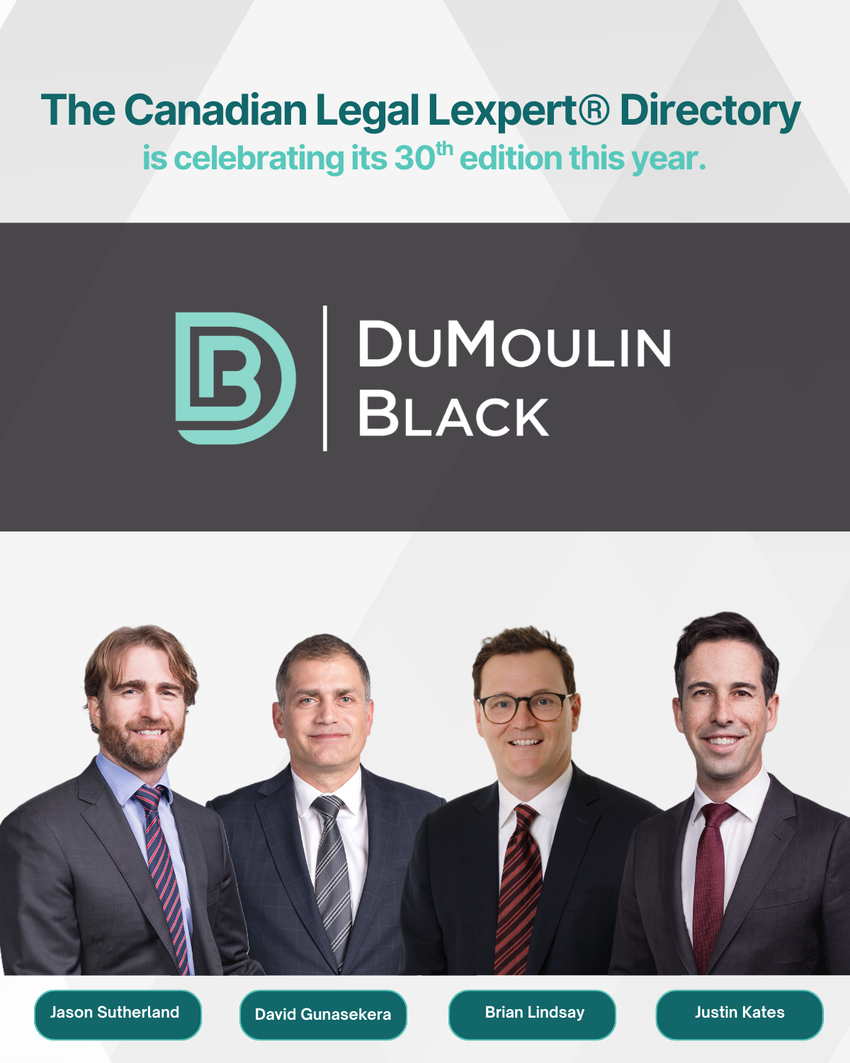 Congratulations to Justin Kates, David Gunasekera, Jason Sutherland, and Brian Lindsay for their collective work in Corporate Mid-Market, Corporate Commercial Law, Mining, Corporate Finance and Securities Law.